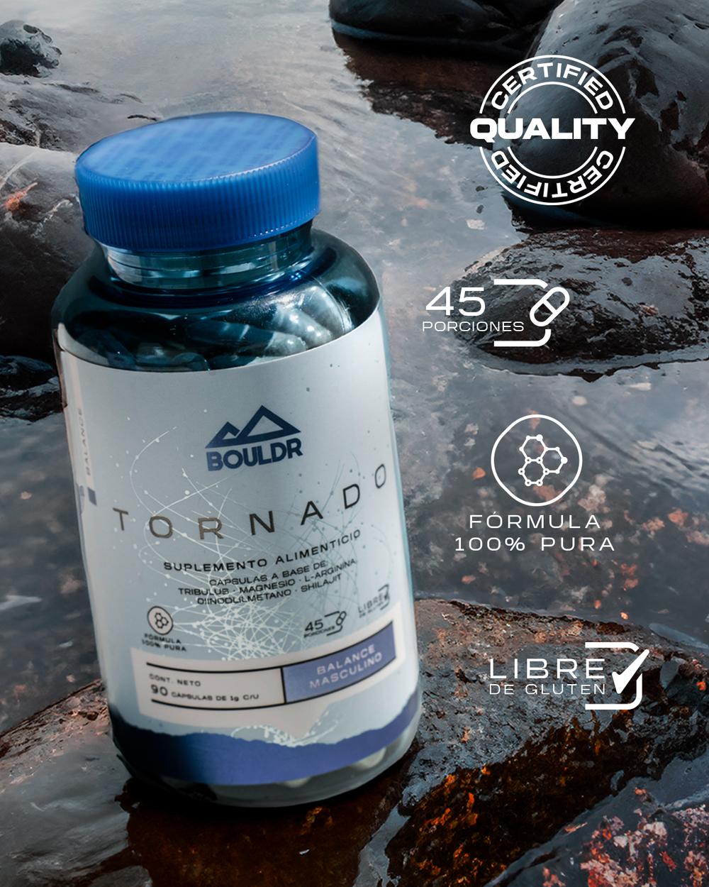 Cápsulas a base de: Tribulus, Magnesio, L-Arginina, Diinolilmetano, Shilajit.