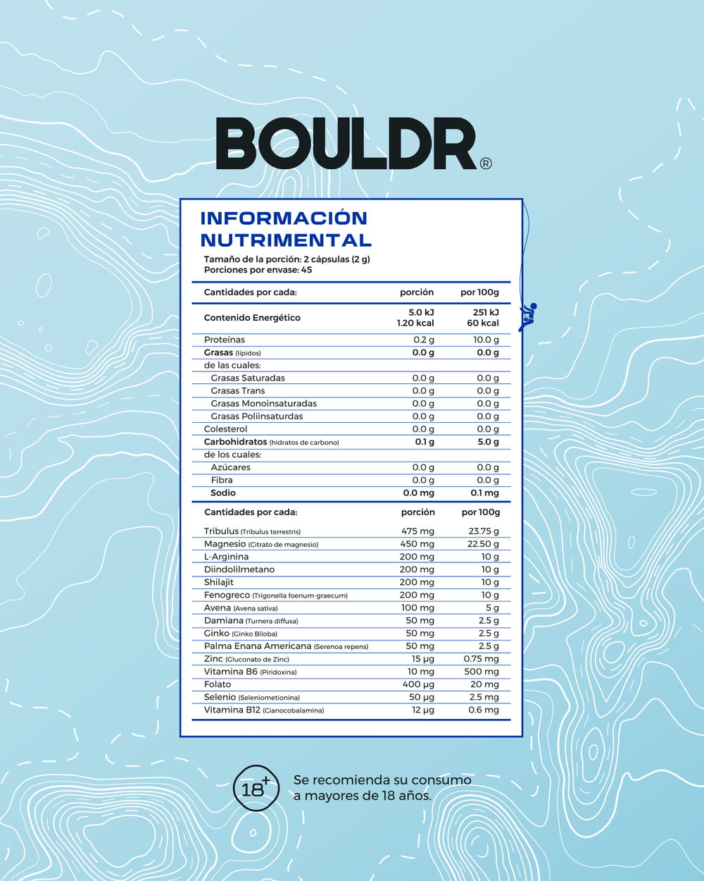 Tamaño de la porción: 2 cápsulas (2g)